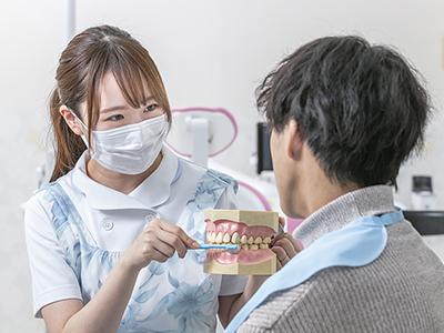 当院では、患者様の口腔内の状況を的確に判断し、現在の状況を説明させていただくと同時に、患者様のご要望をできる限り取り入れた治療並びに予防をしております。